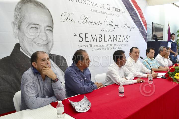 CHILPANCINGO, GUERRERO, 25OCTUBRE2013.- El rector de la Universidad Autónoma de Guerrero (UAGro) Doctor Javier Saldaña Almazán conmemoró el primer aniversario luctuoso del Doctor Asencio Villegas Arrizón, en el museo José Juárez Ubicado en el Andador Zapata de esta ciudad capital, en la que estuvieron presente la esposa e hijos del ex rector, y, cabe mencionar que en representación del gobernador estuvo El Secretario de Asuntos Indígenas Filemón Navarrete Aguilar, mientras que el representantes del presidente municipal capitalino Mario Moreno Arcos estuvo el segundo sindico Marco Cesar Armenta y del poder legislativo el diputado Héctor Astudillo Flores. FOTO: ISAAC HERNÁNDEZ /CUARTOSCURO.COM