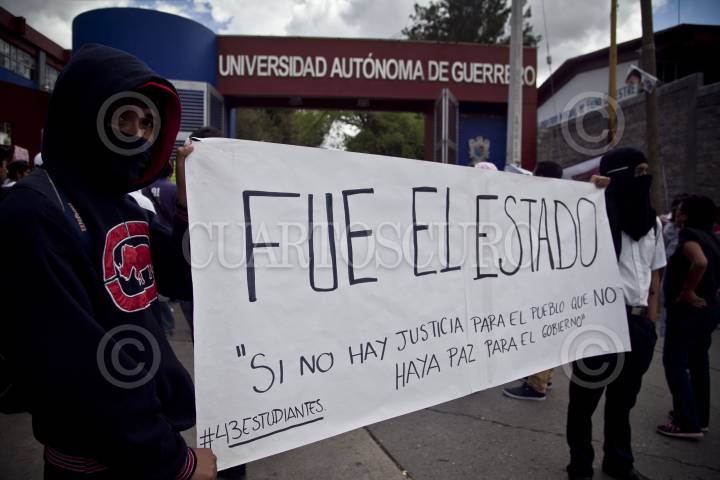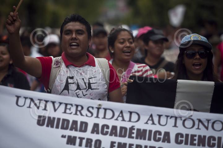 CHILPANCINGO, GUERRERO 11NOVIEMBRE2014.- Estudiantes de la UAGro, realizaron una marcha de la Alameda hacia Ciudad Universitaria para exigir se aclare la investigación ante la desaparición de los normalistas en Iguala. FOTO: RASHIDE FRIAS / CUARTOSCURO.COM