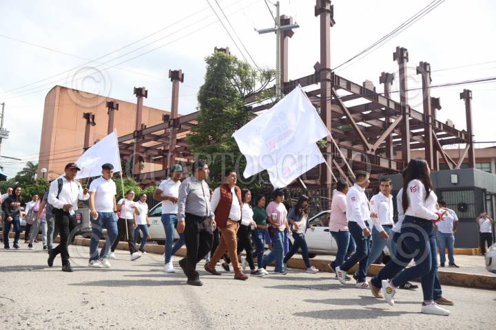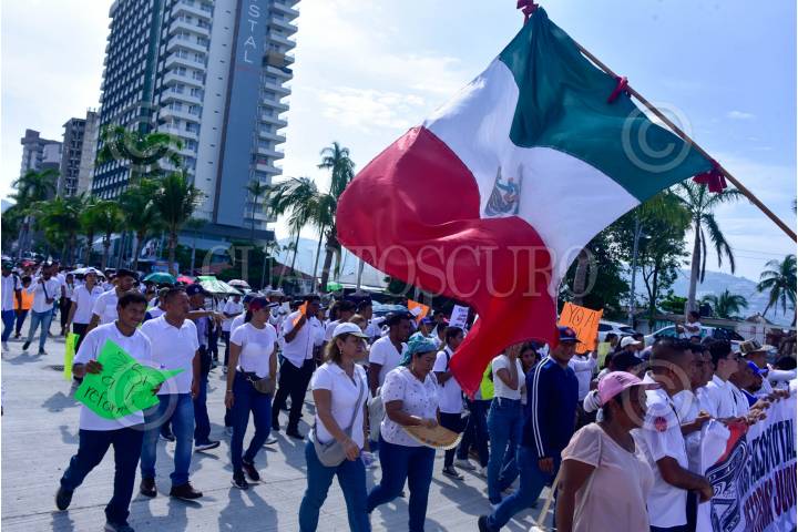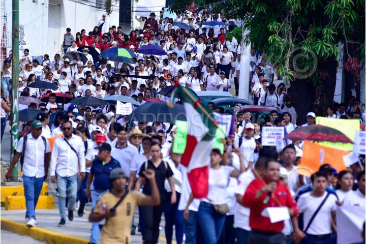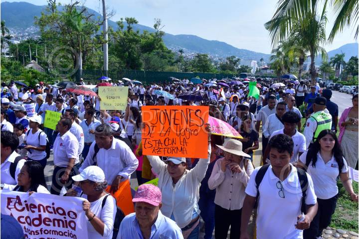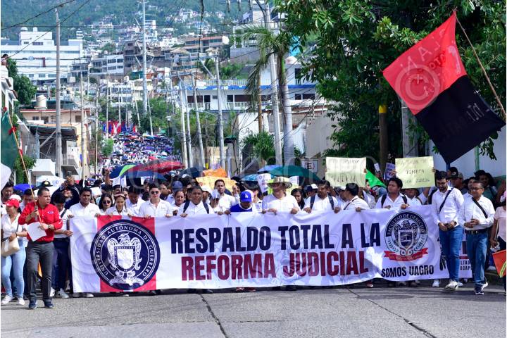 ACAPULCO, GUERRERO, 05SEPTIEMBRE2024.- Estudiantes de la Universidad Autónoma de Guerrero (UAG) marcharon por diferentes calles del puerto de Acapulco en apoyo a la Reforma al Poder Judicial del presidente Andrés Manuel López Obrador, durante la Gritaron consignas en apoyo al presidente y a favor de la Reforma al Poder Judicial, la marcha terminó con un mitin en el asta bandera del puerto. FOTO: CARLOS ALBERTO CARBAJAL/CUARTOSCURO.COM