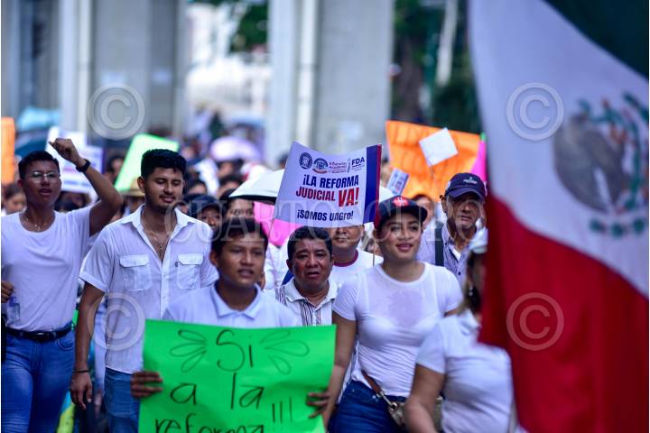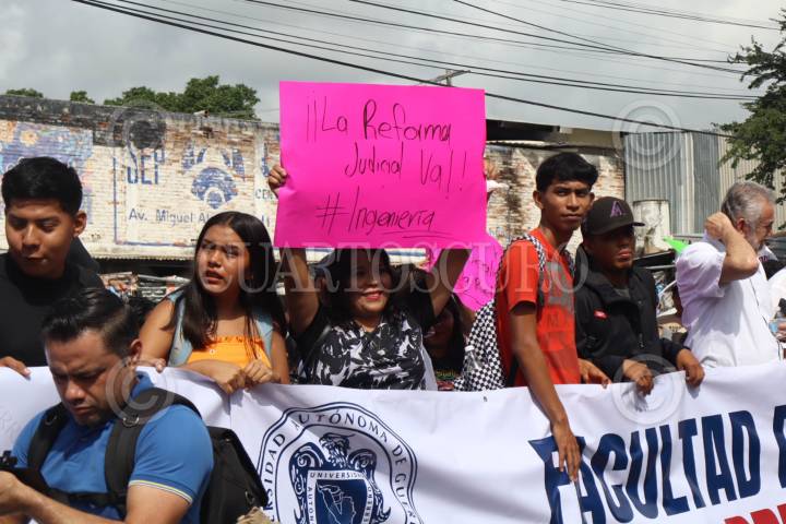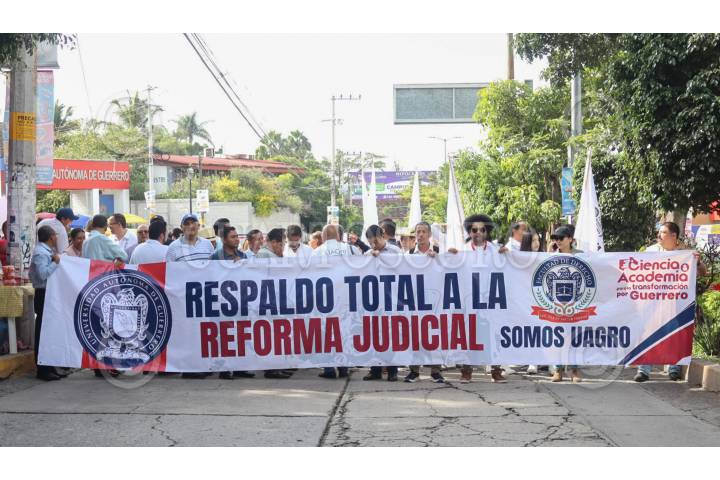 CHILPANCINGO, GUERRERO, 05SEPTIEMBRE2024.- Alrededor de mil universitarios, entre estudiantes y maestros de las diferentes facultades de la Universidad Autónoma de Guerrero (UAGro) se concentraron en Ciudad Universitaria para marchar en apoyo a la reciente Reforma Judicial aprobada por la Cámara de Diputados. Poco antes de las 9:00 de la mañana decenas de universitarios arribaron a CU sur para salir en marcha hacia el Monumento a las Banderas, para posteriormente regresar al Congreso del Estado. Durante la movilización encabezada por Antonio Soto Sotelo, director de la Facultad de Derecho de la UAGro, los manifestantes señalaron la importancia de la reforma para el sistema judicial del país y la necesidad de contar con el apoyo legislativo para su implementación efectiva. La marcha termino con un mitin a las afueras del Congreso local, en dónde hicieron un llamado a los diputados para que cuando llegue la iniciativa de reforma a este congreso, sea votada a favor. FOTO: DASSAEV TÉLLEZ ADAME/CUARTOSCURO.COM