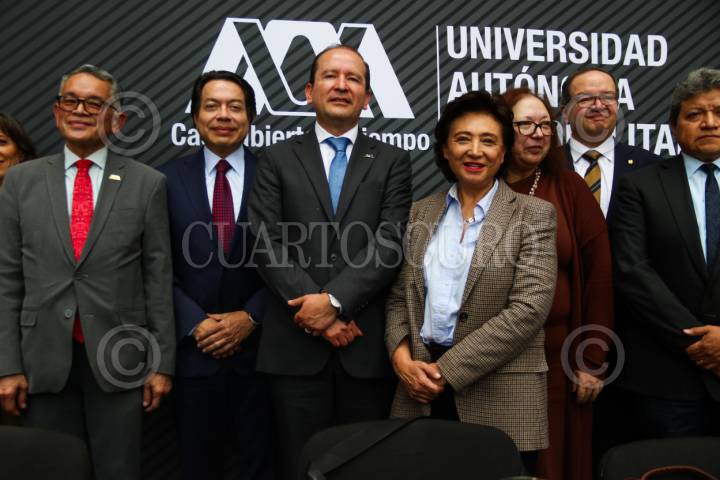 CIUDAD DE MÉXICO. 23JULIO2025.- Mario Delgado, Leonardo Lomelí, entre otros invitados en la ceremonia de inicio de Gustavo Pacheco López, nuevo rector de la UAM, en una evento en la sede de la Autónoma Metropolitana. FOTO: VICTORIA VALTIERRA/CUARTOSCURO.COM