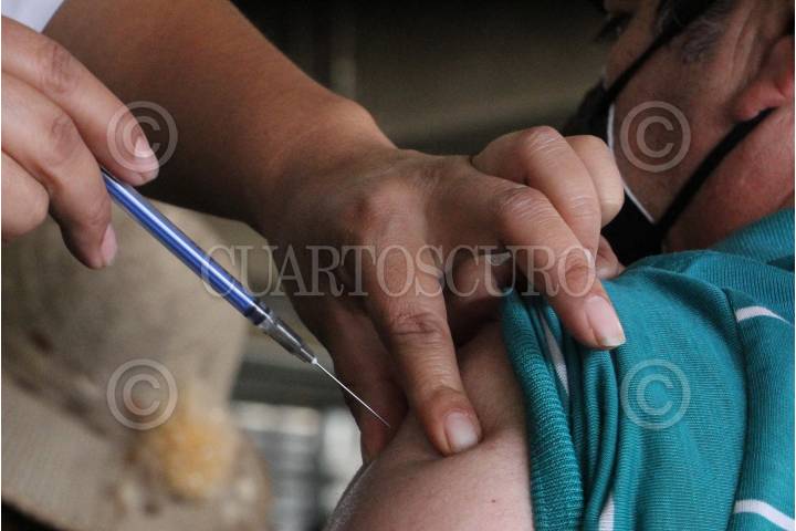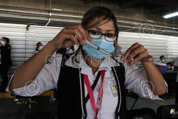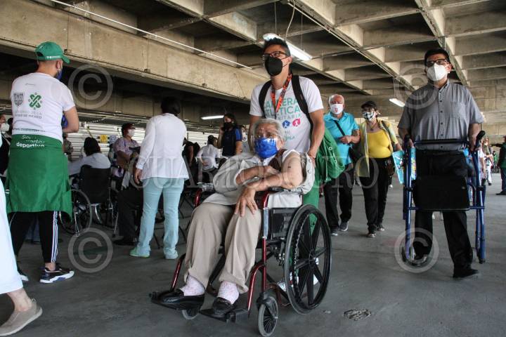 Vacunación en adulto mayor en las inmediaciones de la Arena Ciudad de México.