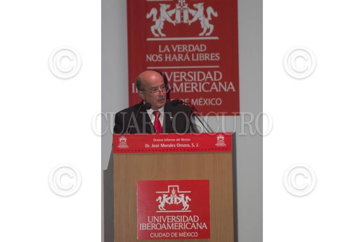 MÉXICO, D.F., 04SEPTIEMBRE2012.- El Dr. José Morales Orozco, rector de la Universidad Iberoamericana, rindió su octavo informe de actividades ante el senado de la misma en el auditorio José Sánchez Villaseñor. Habló sobre la labor de los alumnos en materia social asi como destacó su orgullo ante el hecho de que el movimiento #Somosmasde131 se haya gestado en la Ibero. FOTO: VALENTINA ORTEGA /CUARTOSCURO.COM