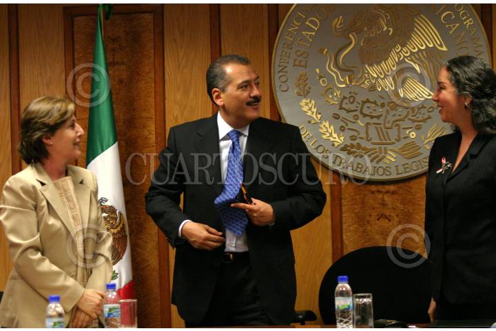 MEXICO, D.F. 26ABRIL2005.- Al centro Manlio Fabio Beltrones, presidente de la mesa directiva de la Cámara de Diputados luego de firmar el convenio para ayudar a esclarecer los homicidios de mujeres en Cd. Juárez, con la directora general de la UNIFEM en México Ma. Teresa Rodríguez (izq), a la derecha la diputada del PRD, Marcela Lagarde. FOTO: Sandra Perdomo/CUARTOSCURO.COM