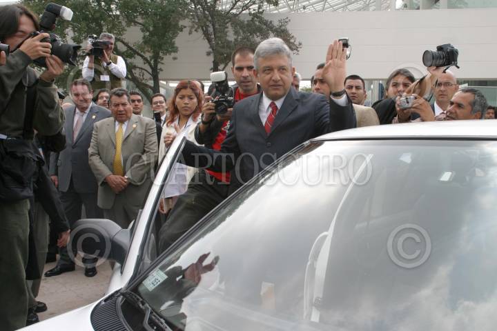 MEXICO, D.F. 20SEPTIEMBRE2004.- Andrés Manuel López Obrador, jefe de gobierno de la ciudad de México, se retira del UNITEC campo Coyoacán al termino de la inauguración de dicho plantel. FOTO: Nelly Salas/CUARTOSCURO.COM