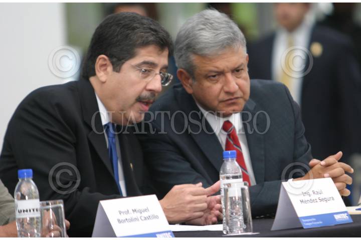 MEXICO, D.F. 20SEPTIEMBRE2004.- Raúl Mendez Segura, rector de la Universidad Tecnológica de México conversa con Andrés Manuel López Obrador, jefe de gobierno de la ciudad de México, durante la ceremonia de inauguración del UNITEC campo Coyoacán. FOTO: Nelly Salas/CUARTOSCURO.COM