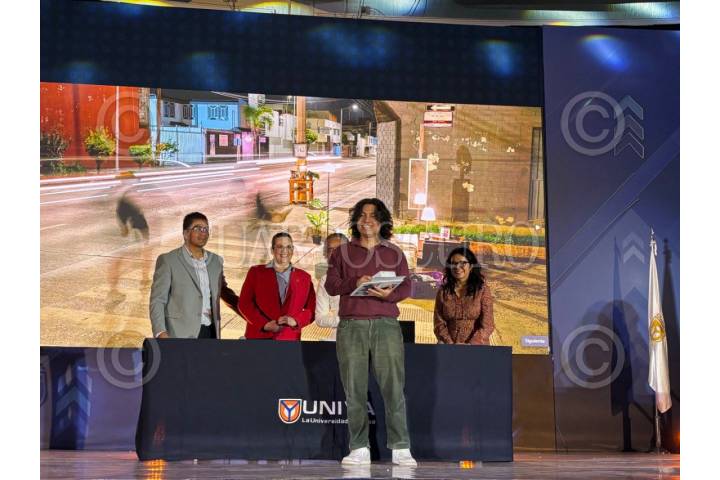GUADALAJARA, JALISCO, 27JUNIO2025.- Entrega de premios y reconocimientos a los ganadores del concurso ¿Cómo vemos los jóvenes el mundo? en el SUM de la UNIVA, organizada por Cuartoscuro. En la imagen Agustín García, ganador del tercer lugar del certamen. FOTO: EMILIANO VALTIERRA/CUARTOSCURO.COM