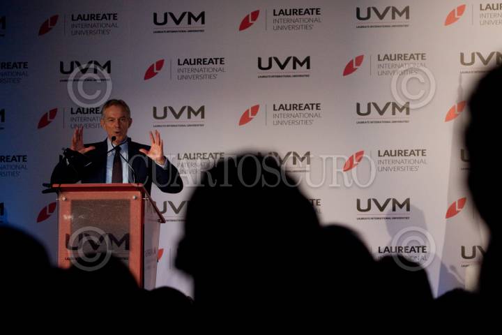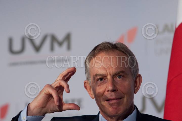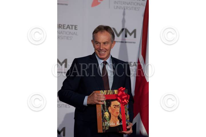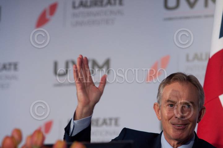 MÉXICO, D.F., 22SEPTIEMBRE2012.- El ex-primer ministro Tony Blair acudió a la Universidad del Valle de México e impartió una charla magistral, el británico esta de visita en nuestro país y ha cumplido varios compromisos en universidades y fundaciones. En la platica una joven le pregunto sobre que consejo le daría el presidente electo Enrique Peña Nieto ahora que asuma el poder, a lo que respondió que debe priorizar los temas de importancia para los temas del día a día no la resten importancia a lo prioritario. Al finalizar el encuentro le regalaron un libro de Frida Khalo. FOTO: MOISÉS PABLO /CUARTOSCURO.COM