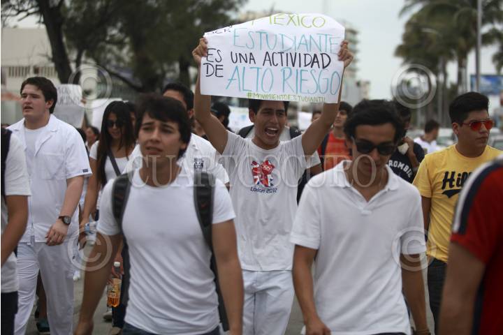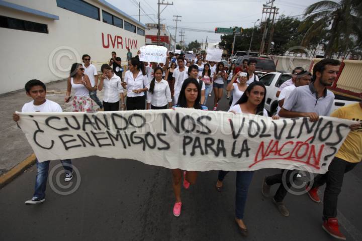 BOCA DEL RÍO, VERACRUZ, 03NOVIEMBRE2014.- Estudiantes de diversas facultades particulares de la Universidad del Valle de México y Universidad Villa Rica marcharon por calles de Boca del Río para solidarizarse y exigir el regreso de los 43 normalistas de Ayotzinapa. FOTO: FÉLIX MÁRQUEZ /CUARTOSCURO.COM