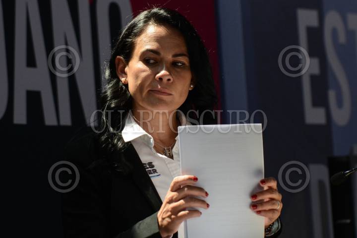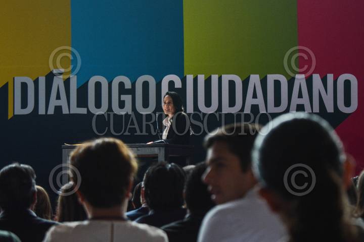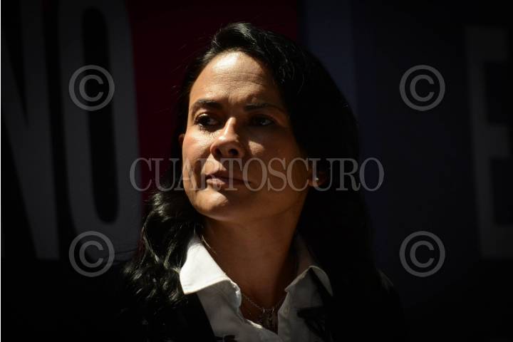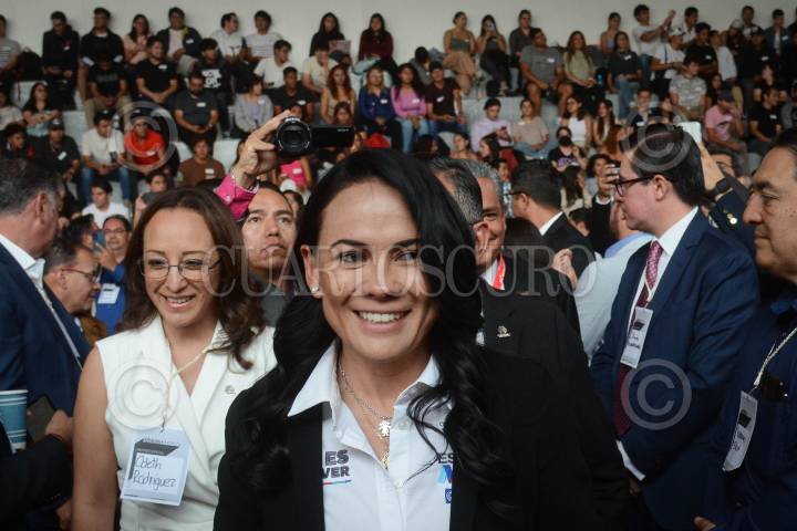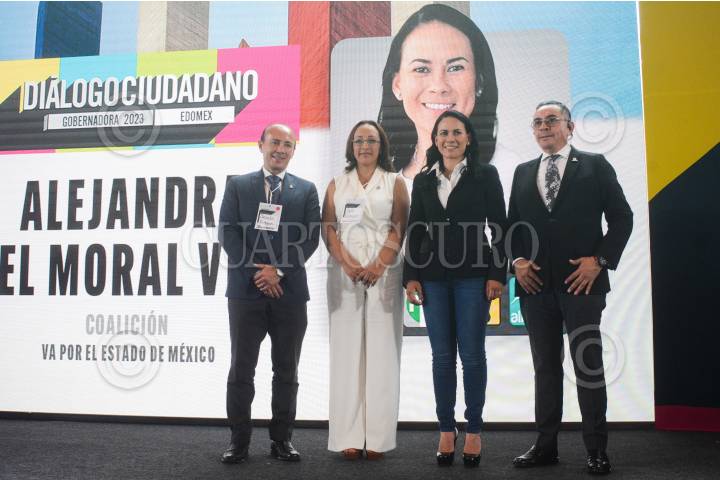 Alejandra del Moral, candidata a la gubernatura del Estado de México por la coalición PRI, PAN y PRD “Va por el Estado de México” durante su participación en el foro “Diálogo Ciudadano: Gobernadora 2023” en las instalaciones de la Universidad Del Valle de México (UVM) campus Lomas Verdes.