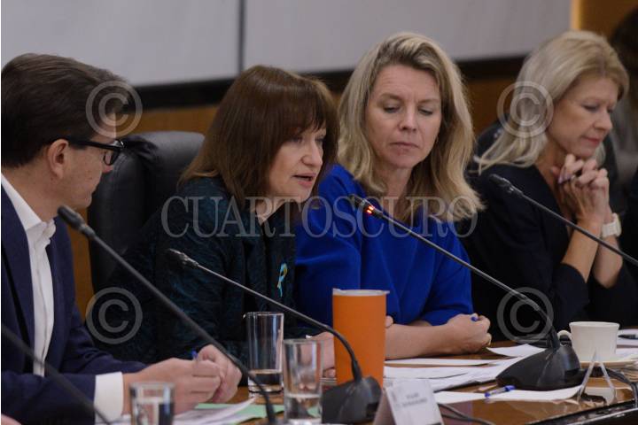Santiago Creel, presidente de la mesa directiva de la Cámara de Diputados; Riult Rivera, presidente del grupo de amistad Ucrania-México; Jorge Álvarez Máynez, diputado y coordinador de MC, y Salomón Chertorivski, diputado de MC, dialogan mientras Oksana Dramarétska, embajadora de Ucrania en México, los observa durante la tercer reunión del grupo de amistad Ucrania-México.