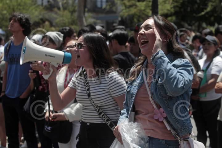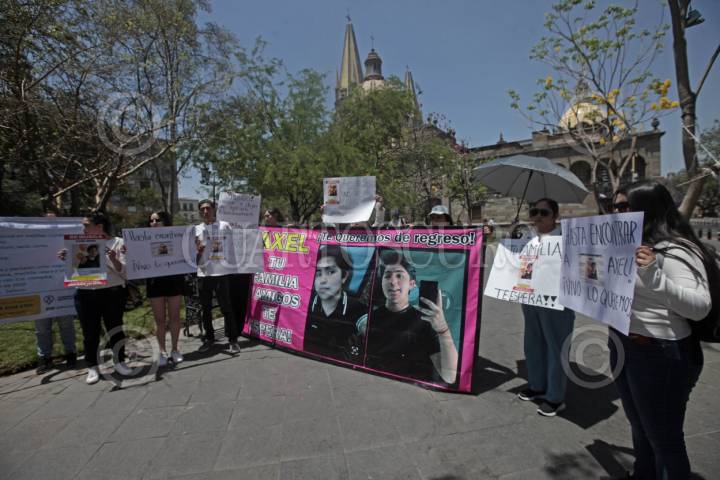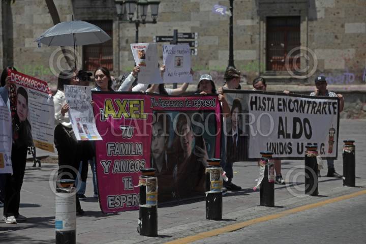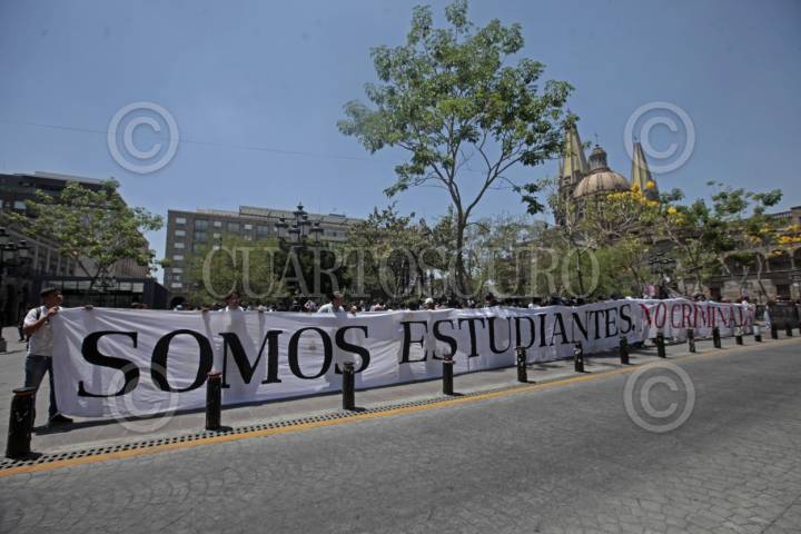 GUADALAJARA, JALISCO. 10ABRIL2025.- Dirigentes de la Federación de Estudiantes Universitarios, estudiantes de diversos centros universitarios y preparatorias de la Universidad de Guadalajara UdeG., se manifestaron a las afueras de Palacio de Gobierno, para exigir al gobierno en turno la aparición con vida de algunos estudiante desaparecidos. FOTO: FERNANDO CARRANZA GARCIA / CUARTOSCURO.COM