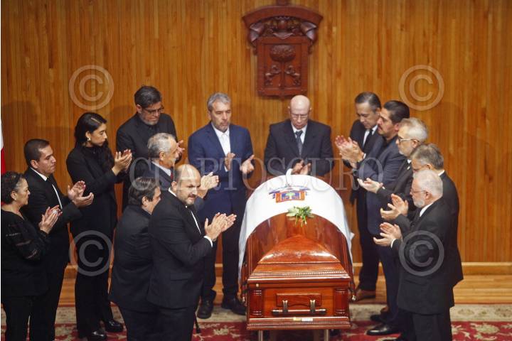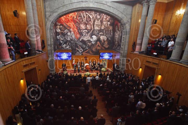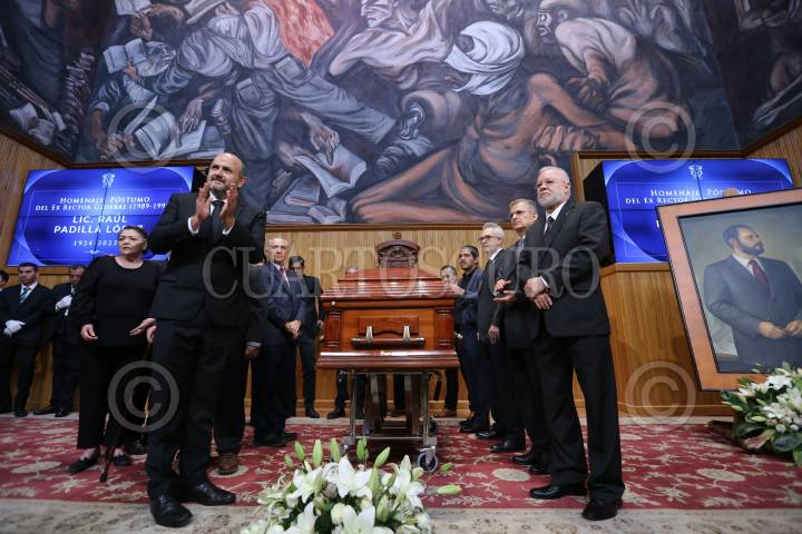 Ricardo Villanueva Lomelí, rector de la UdeG, encabezó el homenaje de cuerpo presente de Raúl Padilla López, en el Paraninfo de esta casa de estudio.