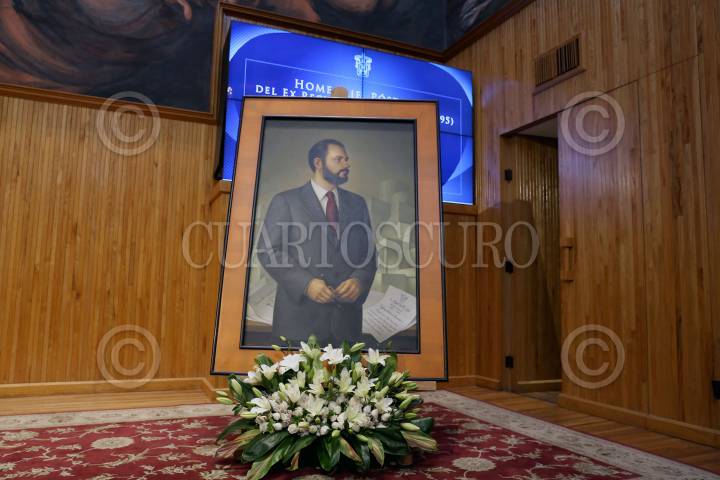 Retrato de Raúl Padilla López, ex rector de la Universidad de Guadalajara, durante el homenaje de cuerpo presente que se realizó en el Paraninfo de esta casa de estudio.