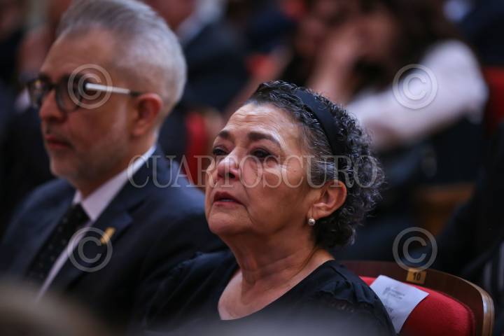 La Maestra Emérita Ruth Padilla Muñoz durante el homenaje de cuerpo presente de Raúl Padilla, ex rector de la Universidad de Guadalajara, en el Paraninfo.