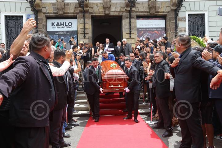Salida del féretro de Raúl Padilla López del Paraninfo de la Universidad de Guadalajara.
