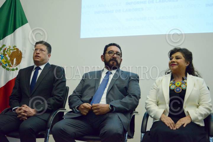 CIUDAD DE MÉXICO, 09ENERO2025.- Clara Brugada, Jefa de Gobierno, asistió al informe de la bores del encargado de la Fiscalía General de Justicia de la CDMX, Ulises Lara. En esta actividad también asistieron, la próxima fiscal Bertha Luján, y el secretario de Seguridad, Pablo Vázquez Camacho. FOTO: GOBIERNO DE LA CIUDAD DE MÉXICO/CUARTOSCURO.COM