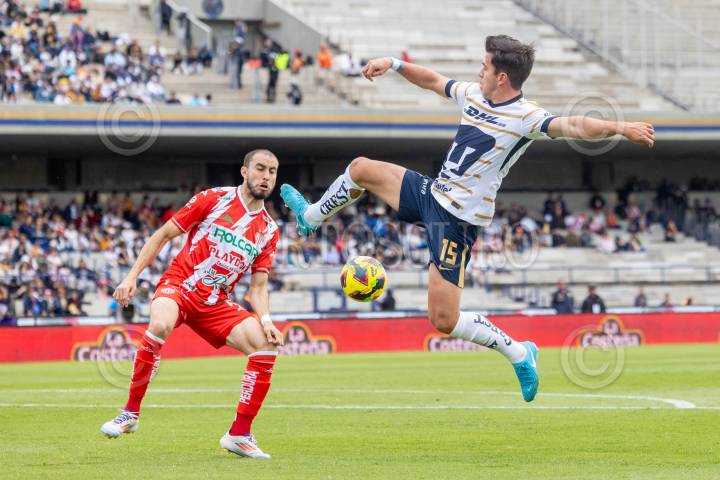 CIUDAD DE MÉXICO, 12ENERO2025.- Los Pumas de la UNAM vencieron 2-1 al Necaxa en su casa, el Estadio Olímpico Universitario, partido correspondiente a la jornada 1 de la Liga MX. En la imagen Ulises Rivas de Pumas busca el balón durante una acción en el encuentro. FOTO: MOISÉS PABLO/CUARTOSCURO.COM
