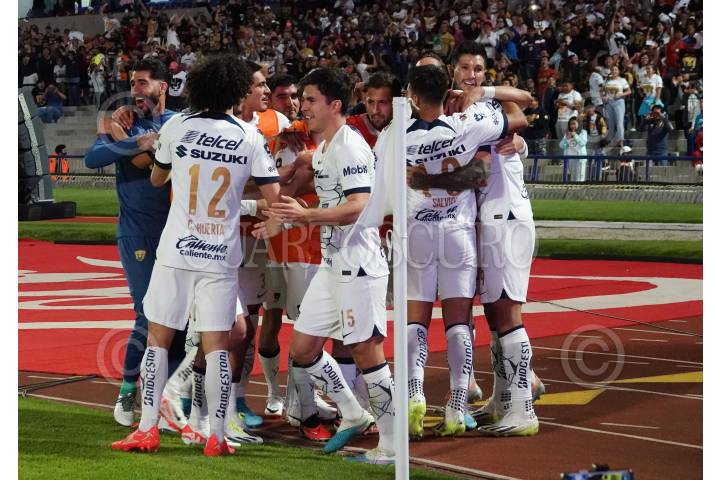 CIUDAD DE MÉXICO, 07OCTUBRE2023. Ulíses Rivas de Pumas festeja su anotación durante el partido de fútbol Cruz Azul vs Pumas correspondiente a la jornada 12 del Torneo Apertura 2023 de Liga BBVA MX en el Estadio Azteca. FOTO: EDGAR NEGRETE/CUARTOSCURO.COM
