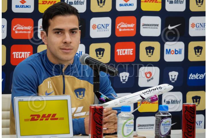 CIUDAD DE MÉXICO,18ENERO2024.- Ulises Rivas, futbolista de Pumas, ofreció una conferencia de prensa, donde habló de los próximos encuentros del equipo como el de este viernes contra el Atl. San Luis. FOTO: DENISSE HERNÁNDEZ/CUARTOSCURO.COM