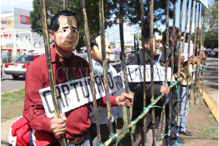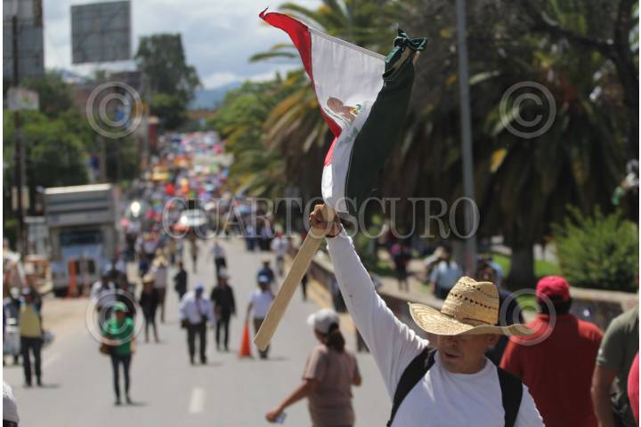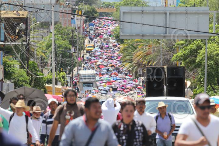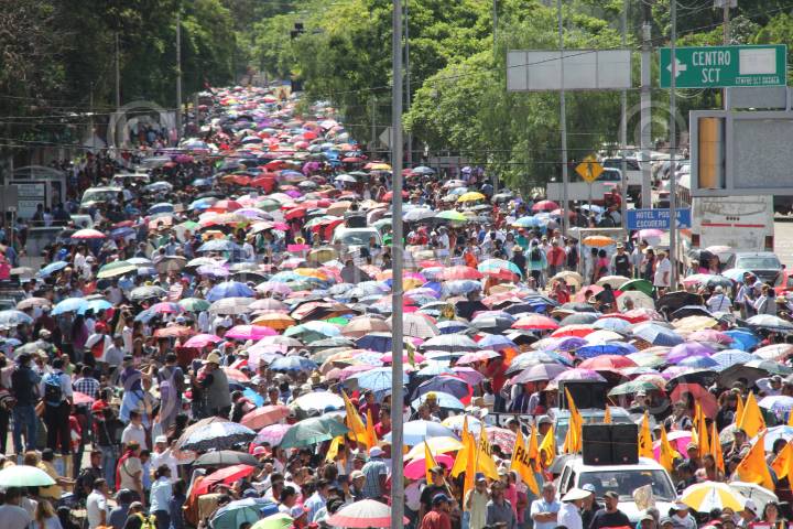 OAXACA, OAXACA, 14JUNIO2016.- Miles de profesores de la sección 22 adherida a la Coordinadora Nacional de los Trabajadores de la Educación (CNTE) apoyados por padres de familia y organizaciones sociales marcharon en la ciudad de Oaxaca al cumplirse 10 años del desalojo fallido que el ex gobernador, Ulises Ruiz ejecutó la madrugada del 14 de junio del 2006 con la intensión de desalojar a los profesores que mantenían un plantón en el zócalo de la ciudad. FOTO: ARTURO PÉREZ ALFONSO /CUARTOSCURO.COM