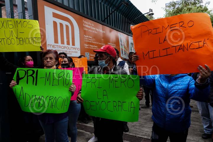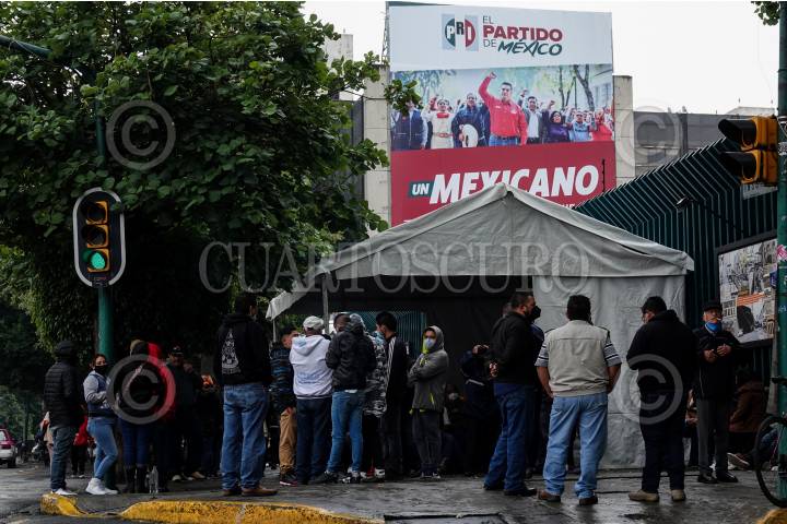 Militantes del PRI mantienen un plantón afuera del CEN del partido en exigencia de la renuncia de Alejandro Moreno
