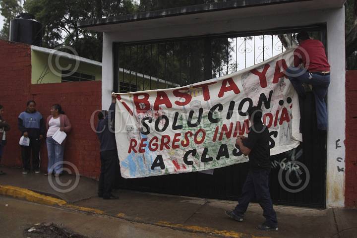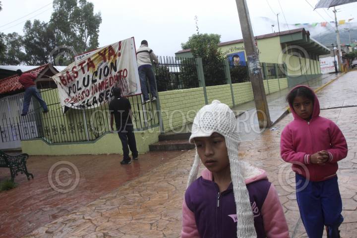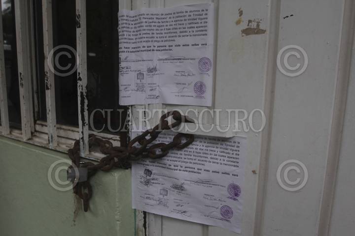 OAXACA, OAXACA., 26AGOSTO2013.- Padres de familia pertenecientes a la primaria de Pensador Mexicano de la agencia municipal de Trinidad de Viguera tomaron este lunes las instalaciones de la escuela a la que le colocaron sellos en las 3 entradas y en la dirección de la escuela, además, le dieron 48 horas a los profesores de la Sección 22 del CNTE para que regresen a dar clases, de lo contrario contratarán a la Sección 59. FOTO: ARTURO PÉREZ ALFONSO /CUARTOSCURO.COM