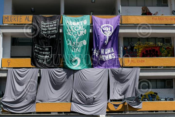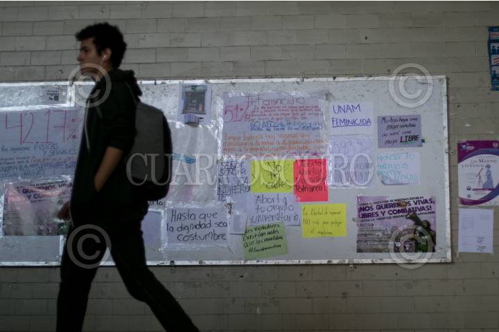 Aspectos de la facultad de Filosof´ia y Letras de la UNAM durante el paro nacional "Un Día Sin Nosotras". Dicha facultad permanece en paro indefinido desde hace más de cuatro meses.