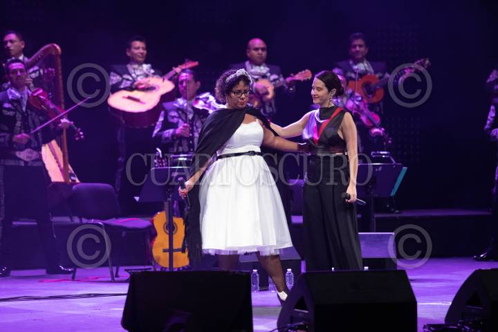 Eugenia León y Ely Guerra durante el concierto Chavela y sus mujeres, Un homenaje a Chavela Vargas en el Teatro de la Ciudad Esperanza Iris.