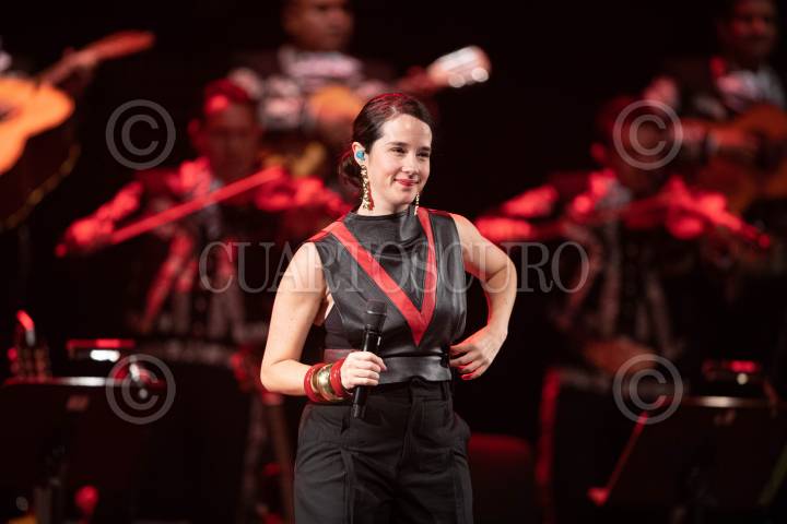 Ely Guerra y el mariachi Gama Mil durante el concierto Chavela y sus mujeres, Un homenaje a Chavela Vargas en el Teatro de la Ciudad Esperanza Iris.