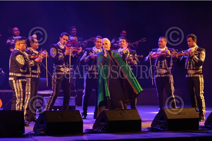 Eugenia león y el mariachi Gama Mil durante el concierto Chavela y sus mujeres, Un homenaje a Chavela Vargas en el Teatro de la Ciudad Esperanza Iris.
