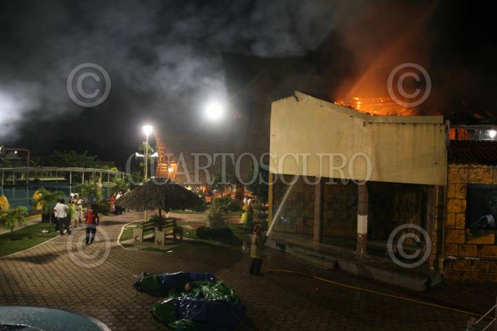 VILLAHERMOSA, TABASCO, 29NOVIEMBRE2009.- Al filo de esta medianoche ardió en llamas unas de las palapas principales del parque de diversión denominado "Parkezote" el cual se ubica en la colonia Casa Blanca. Según informes del H. Cuerpo de Bomberos indican que el siniestro fue provocado por una sobrecarga de energía eléctrica cuando era ocupado el inmueble por un grupo de personas que celebraban un banquete familiar. FOTO: MARCO POLO GUZMÁN HERNÁNDEZ/CUARTOSCURO.COM