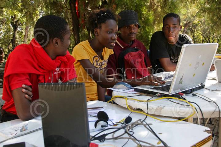 PUERTO PRÍNCIPE, HAITI, 30ENERO2010.- En un campamento de Puerto Príncipe ofrecen el servicio de internet, telefonía y energía eléctrica por unas cuantas monedas. FOTO: ISAAC ESQUIVEL/CUARTOSCURO.COM