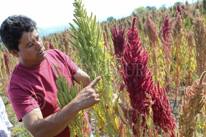 MÉXICO, D.F., 27OCTUBRE2010.- Un productor muestra unas panojas de Amaranto que son cultivadas en las partes altas de Tulyehualco en la delegación Xochimilco en la cual sale el grano de amaranto la cual es procesada para hacer disintos productos alimenticios de alto valor nutricional como cereal reventado, del cual se elaboran los siguientes productos finales: alegrías, amaranto (cereal) reventado, granolas, tamales, atoles, pinole, mazapán, etc., y también existen otros productos elaborados como: cereales enriquecidos, tortillas, galletas, panqués, horchata, bebidas chocolatadas, hojuelas, harinas, etc. FOTO: RODOLFO ANGULO/CUARTOSCURO.COM