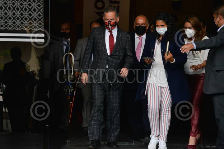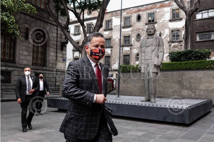 Santiago Nieto, titular de la Unidad de Inteligencia Financiera (UIF) durante su salida del cuarto día de actividades de la reunión plenaria del grupo parlamentario de Morena de la Cámara de Diputados.