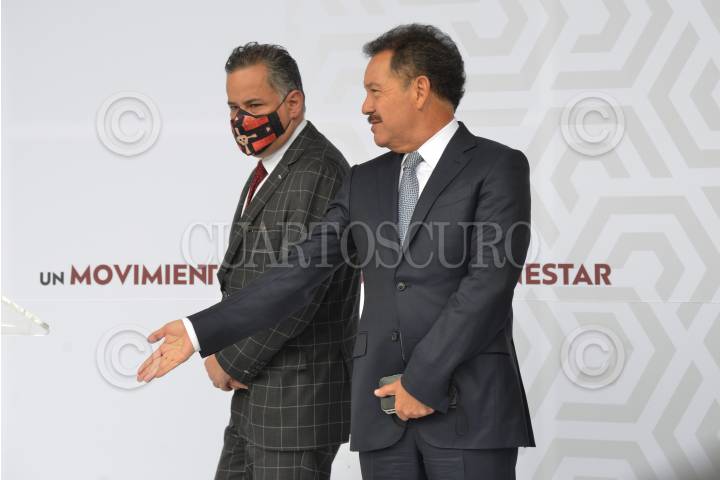 El senador Alejandro Armenta, Santiago Nieto durante la Reunión Plenaria de Morena en la antigua sede del Senado.
