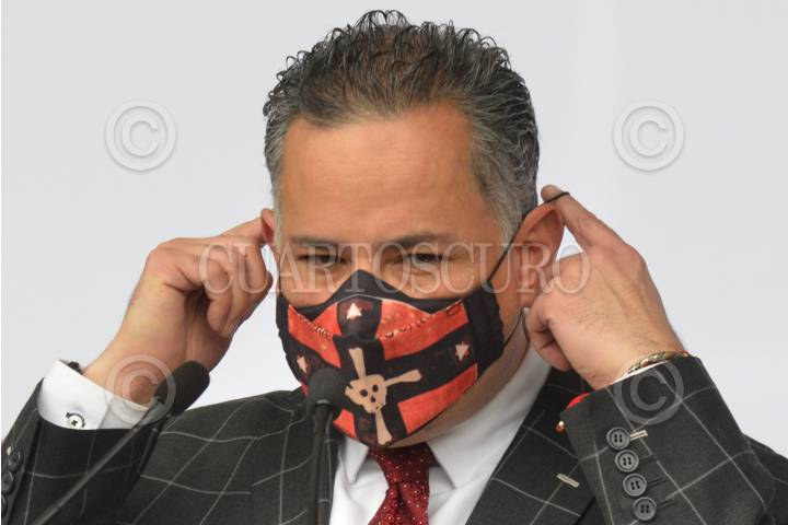 CIUDAD DE MÉXICO, 14AGOSTO2024.- Pablo Gómez, titular de la Unidad de Inteligencia Financiera, durante la conferencia matutina desde el Salón Tesorería de Palacio Nacional. FOTO: ROGELIO MORALES /CUARTOSCURO.COM