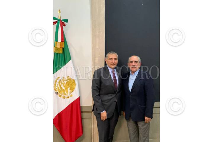 Pablo Gómez, es recibido por Ignacio Mier, diputado y coordinador de Morena, tras ser ratificado como titular de la Unidad de Inteligencia Financiera (UIF).