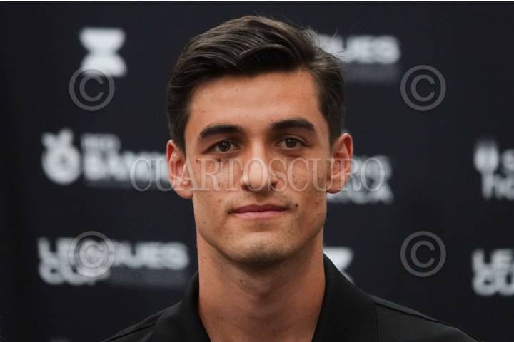 El futbolista Haret Ortega durante la entrega de paquetes alimentarios a familias de Iztapalapa en la Central de Abastos