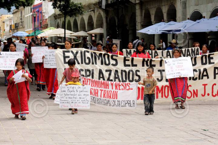 OAXACA, OAXACA 02FEBRERO2005.- Alrededor de 5 mil indígenas entre ellos mujeres y niños adheridos al Movimiento Unificador de Lucha Triqui (MULT), se movilizaron por diferentes puntos de ciudad en demanda de apoyo a las comunidades de la región Triqui del Estado. FOTO:Blanca Esthela Hernández/CUARTOSCURO.COM