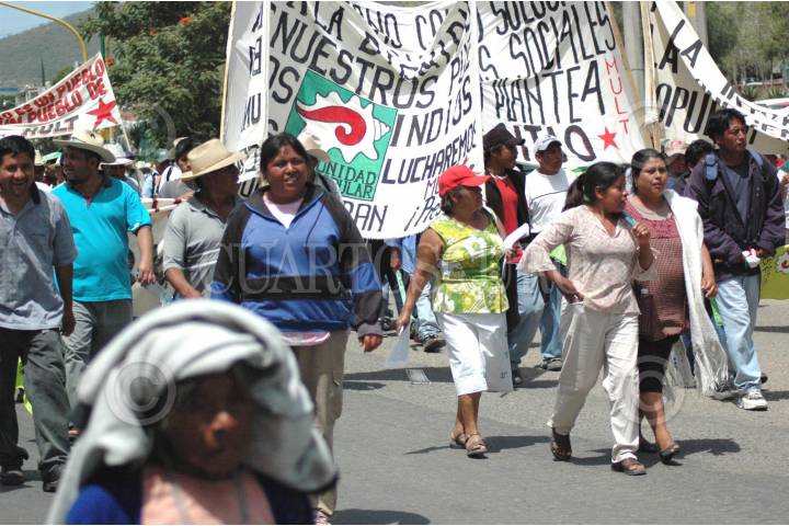 OAXACA, OAXACA 01OCTUBRE2005.- Indígenas mixtecos adheridos al Movimiento Unificador de Lucha Triqui (MULT) marcharon exigen a la Procuraduría General de Justicia y al Gobierno de estado esclarezca los 90 asesinatos de indígenas en esa región incluyendo el actual de uno de los dirigentes el profesor Hilario González Domínguez. FOTO: Blanca Esthela Hernández/CUARTOSCURO.COM