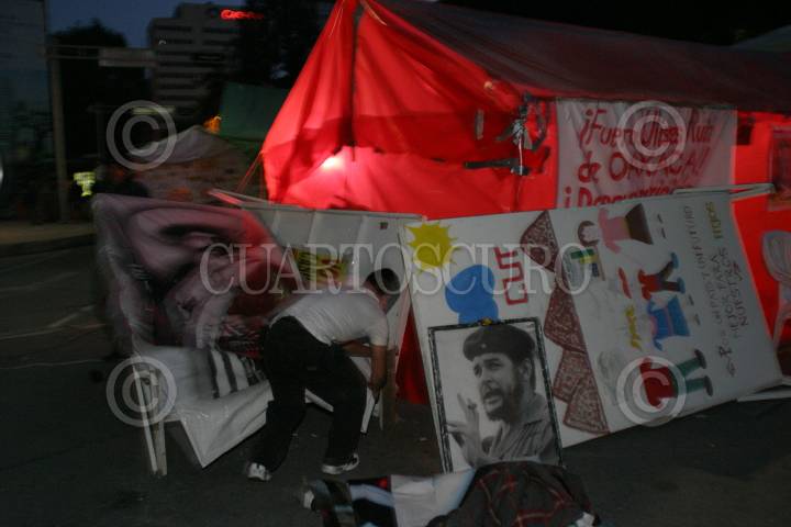 MEXICO, D.F. 21AGOSTO2006.- Estudiantes caminan por el campamento que integrantes de la Coalición Por el Bien de Todos mantienen sobre avenida Reforma. FOTO: Nelly Salas/CUARTOSCURO.COM