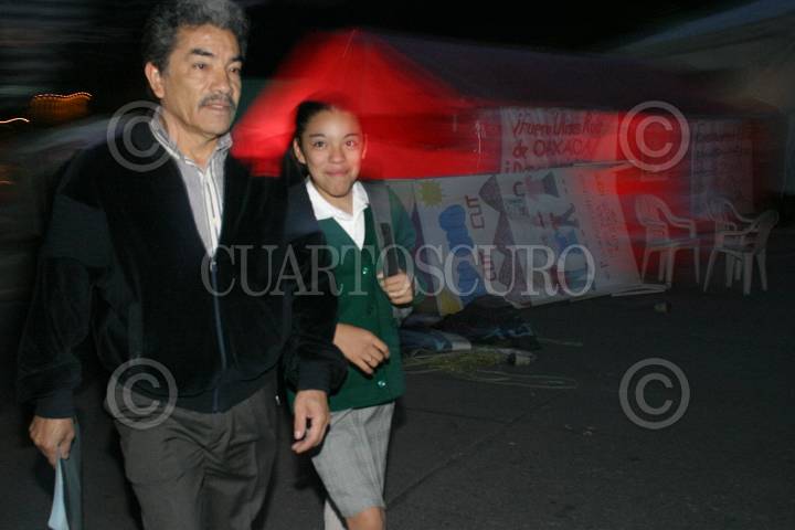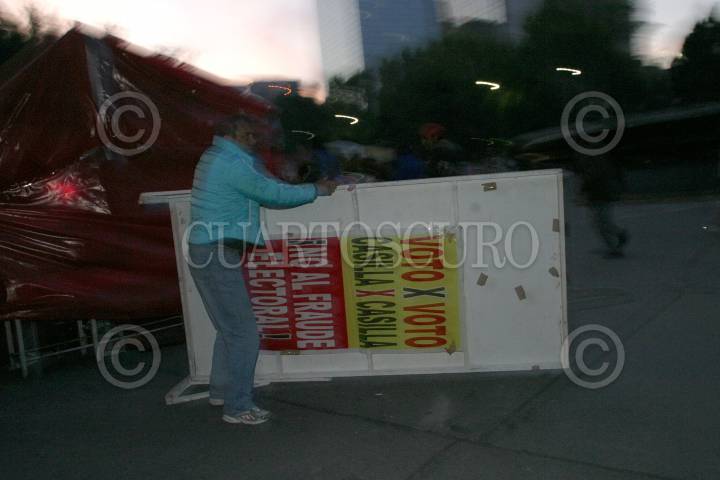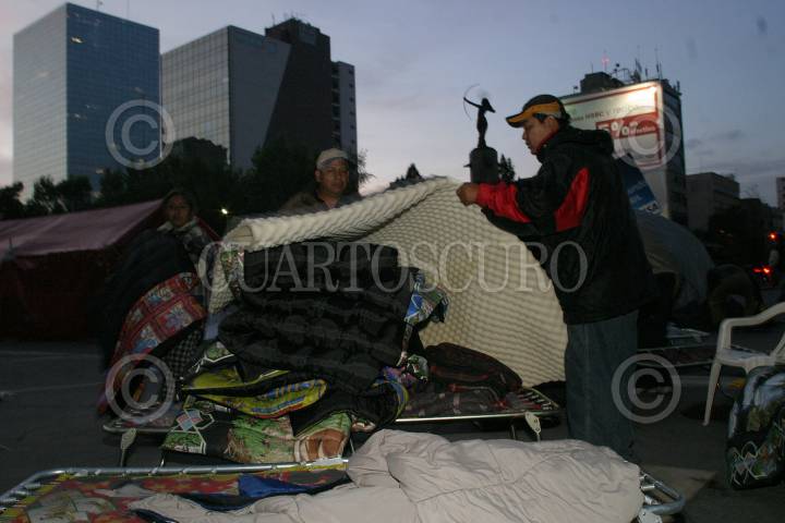 MEXICO, D.F. 21AGOSTO2006.- Integrantes de la Central Unitaria de Trabajadores aceptaron retirar los campamentos en la glorieta de la Diana Cazadora, en los cruces con las avenidas Paseo de la Reforma y Río Mississipi para facilitar la llegada a clases de los estudiantes a sus centros de estudio. FOTO: Nelly Salas/CUARTOSCURO.COM