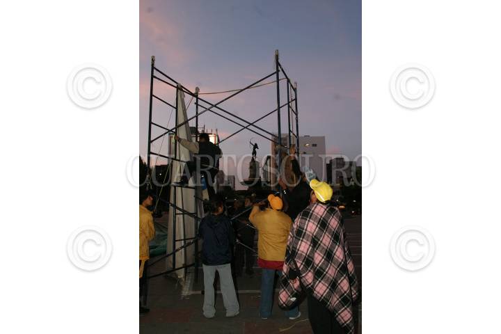 Cuernavaca, Morelos25ENE2004.- Integrantes de la Central Unitaria de Trabajadores de Morelos y estudiantes colocaron en la plaza civica pancartas de apoyo a los pobladores de Tlalnepantla. FOTO: Eunice Adorno/CUARTOSCURO.COM