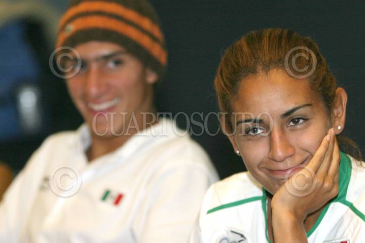 MEXICO, D.F. 23AGOSTO2005.- Los clavadistas Jashia Luna y Romel Pacheco ofrecieron una conferencia de prensa en el Aeropuerto de la ciudad de México, hablason sobre su participación en la Universiada 2005. FOTO: Nelly Salas/CUARTOSCURO.COM