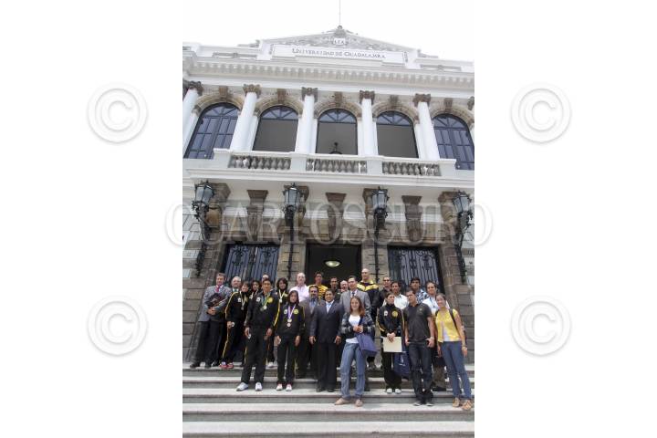 GUADALAJARA, JALISCO, 11JULIO2012.- El rector general de la Universidad de Guadalajara (U. de G.) Marco Antonio Cortes Guardado, dio la bienvenida a los atletas jaliscienses que participaron en la Universiada Nacional Veracruz 2012, la cual culmino con un total de 12 medallas, de la cuales 6 corresponden al oro una de plata y 5 bronces para la casa de estudios tapatía. FOTO: FERNNADO CARRANZA /CUARTOSCURO.COM