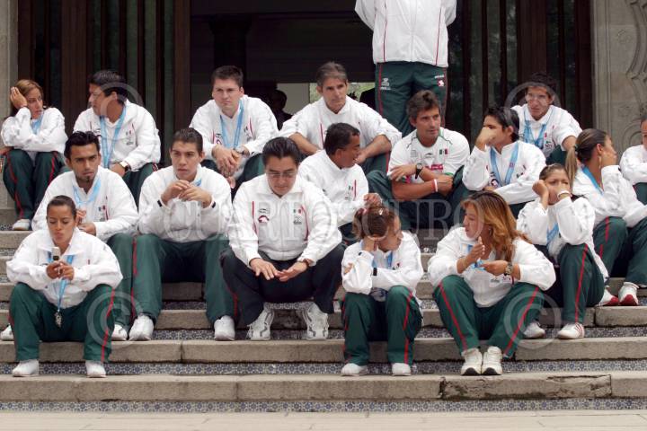 MEXICO, D.F., 24AGOSTO2005.- Los medallistas de la Universiada en Turqía, esperan la llegada del Presidente de la República en las escalinatas de la residencia oficial de los Pinos. FOTO: Moisés Pablo/CUARTOSCURO.COM