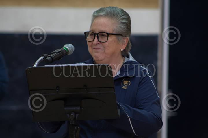 Patricia Dávila, secretaria de Desarrollo Institucional, en el abanderamiento de la UNAM