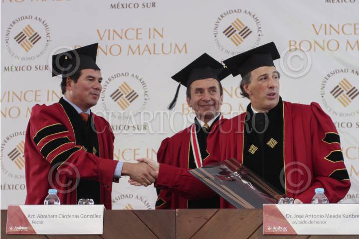 MÉXICO, D.F., 10OCTUBRE2015.- José Antonio Meade, secretario de Desarrollo Social, acudió como invitado de honor a la graduación de más de 200 alumnos de la Universidad Anáhuac, de la cual el secretario también es graduado. Al final de la cermonia recibió un reconocimiento por parte de las autoridades de la institución educativa. FOTO: MARÍA JOSÉ MARTÍNEZ /CUARTOSCURO.COM