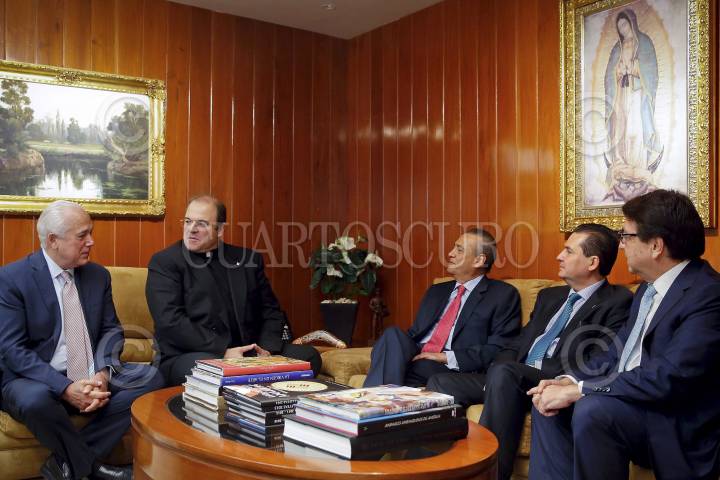 MÉXICO, D.F., 12NOVIEMBRE2015.- Manlio Fabio Beltrones, presidente del Comité Ejecutivo Nacional del PRI, ofreció una conferencia magistral en el seminario de Reformas Estructurales en la Universidad Anáhuac, en donde se reunió con el rector de esta universidad, el padre Cipriano Sánchez. FOTO: CUARTOSCURO.COM
